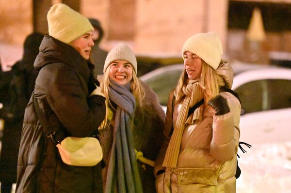 Несмотря на мороз зрителей собралось немало, организаторы предложили горячий чай во время просмотра.