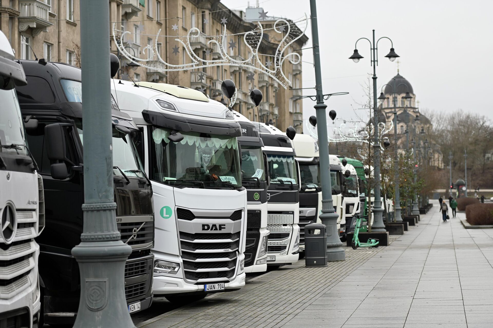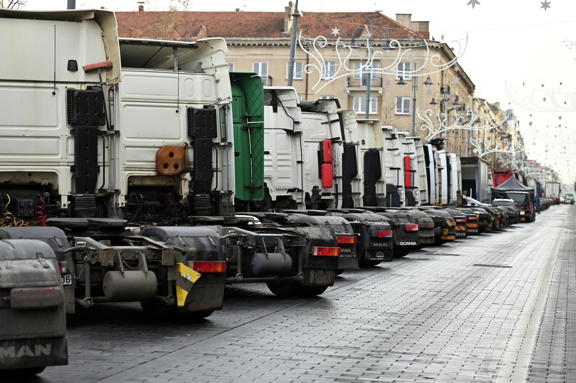 Акция протеста литовских перевозчиков в Вильнюсе© Sputnik / Владислав Адамовский“Там (в Белоруссии) припаркованы два моих грузовика с двумя рефрижераторами. Цены выросли, работать еще можно, но мы стоим на месте. Сейчас, перед Новым годом, есть только заработок…Я оцениваю убытки в десятки тысяч евро“, – указал он.© Sputnik / Владислав АдамовскийАкция протеста литовских перевозчиков в Вильнюсе