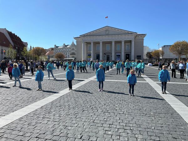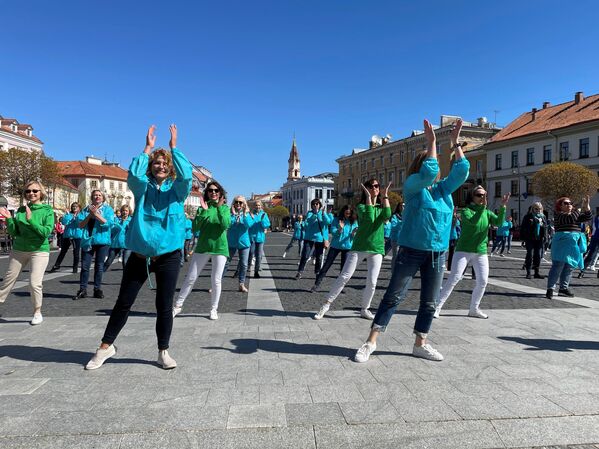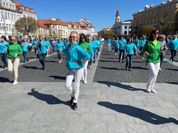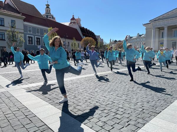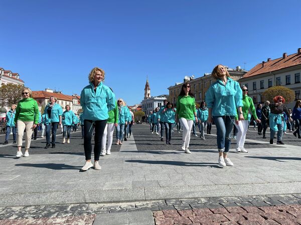 Vilniuje, Rotušės aikštėje, flash mobo dalyviai įvairiais populiariais ritmais šoko masinius šokius