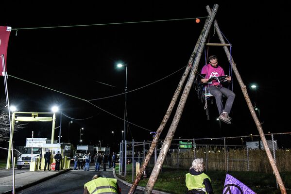 Niujorke aplinkosaugos aktyvistų grupė "Extinction Rebellion" surengė protestą priešais "New York Times" spaustuvę Kvinse, kad atkreiptų dėmesį į žiniasklaidos vaidmenį vyriausybei nereaguojant į klimato krizę.