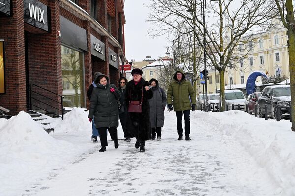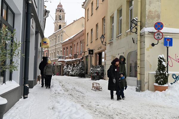 И те, кто соскучился по настоящей зиме, поспешили на прогулку по окутанному снегом Вильнюсу.