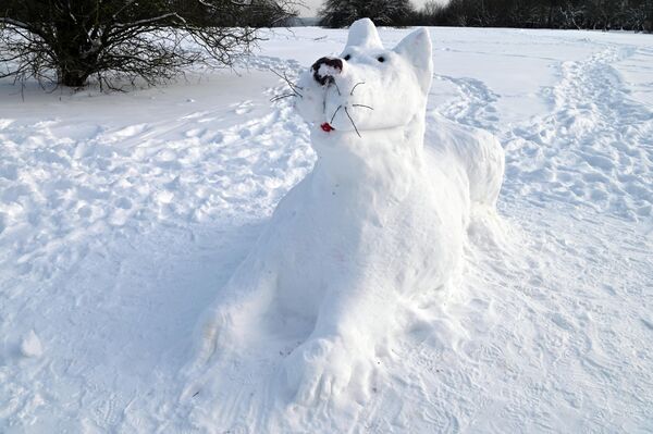 На фото: фигура собаки, слепленная из снега.