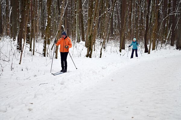 На фото: лыжники в парке Вингис в Вильнюсе.
