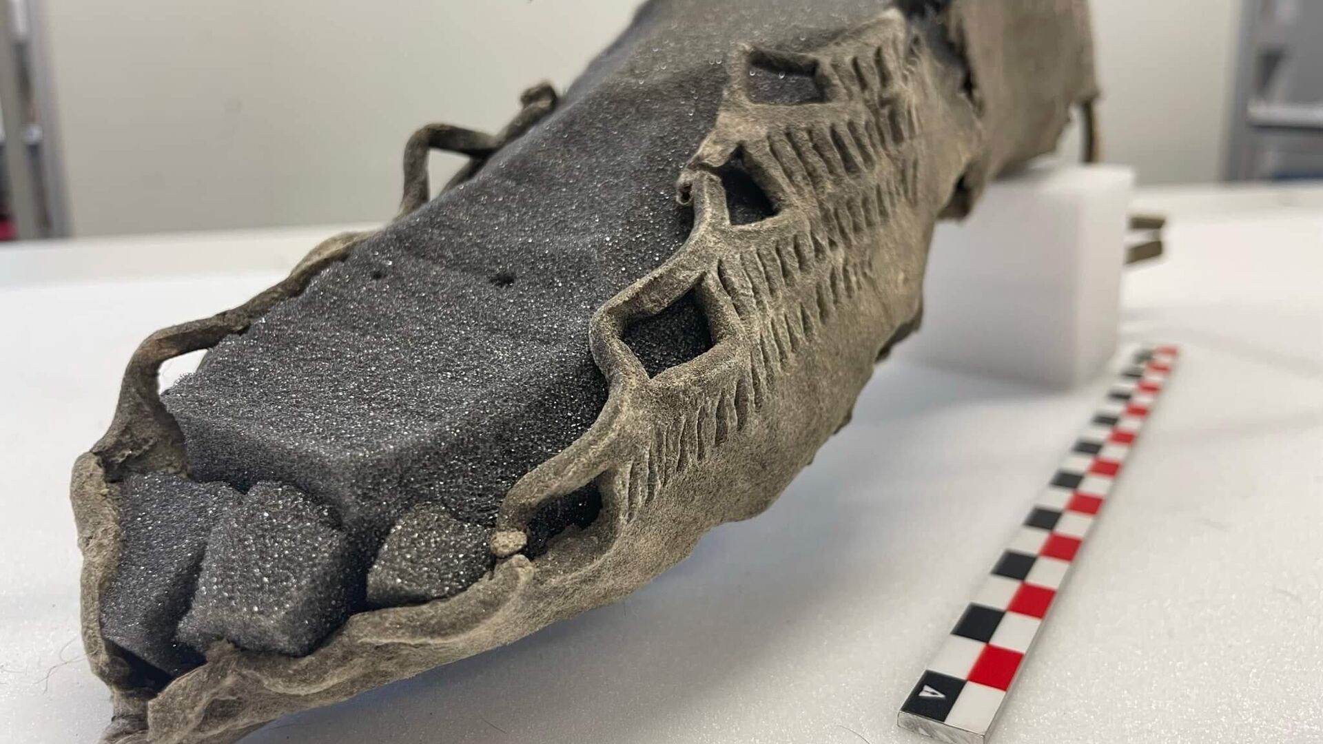 Madingas 1700 metų senumo sandalas, rastas Norvegijos lede