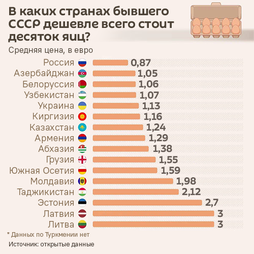 В каких странах бывшего СССР десяток яиц стоит дешевле всего